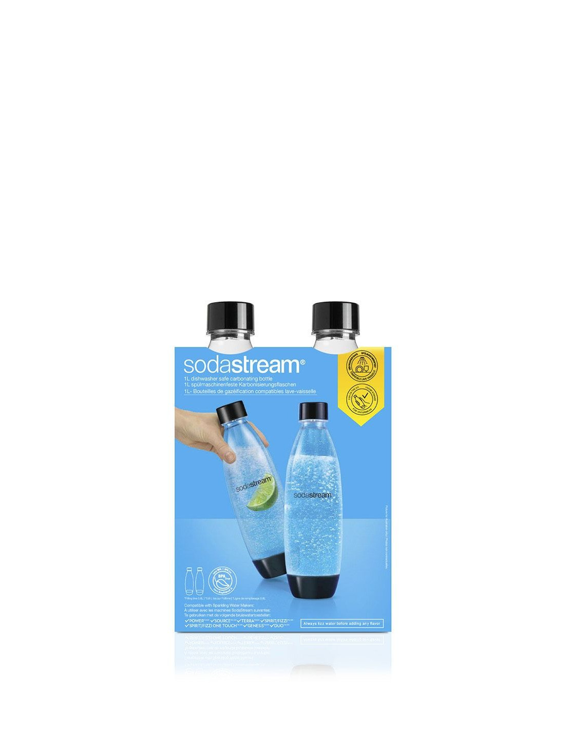 Nadopunite svoj SodaStream sustav s ovim praktičnim setom od dvije Fuse boce od 1 litre, koje možete prati u perilici posuđa. Izrađene su od izdržljivog materijala bez BPA, s hermetičkim zatvaranjem koje zadržava svježinu napitka.